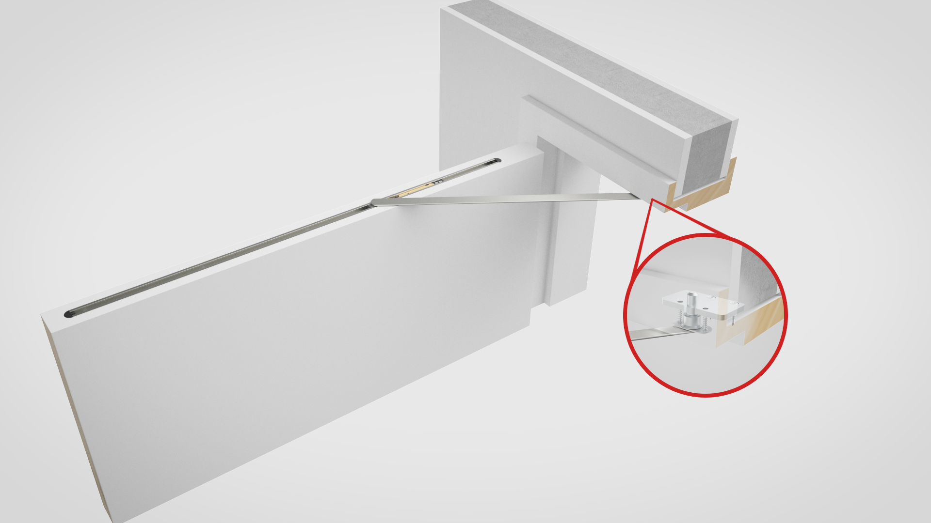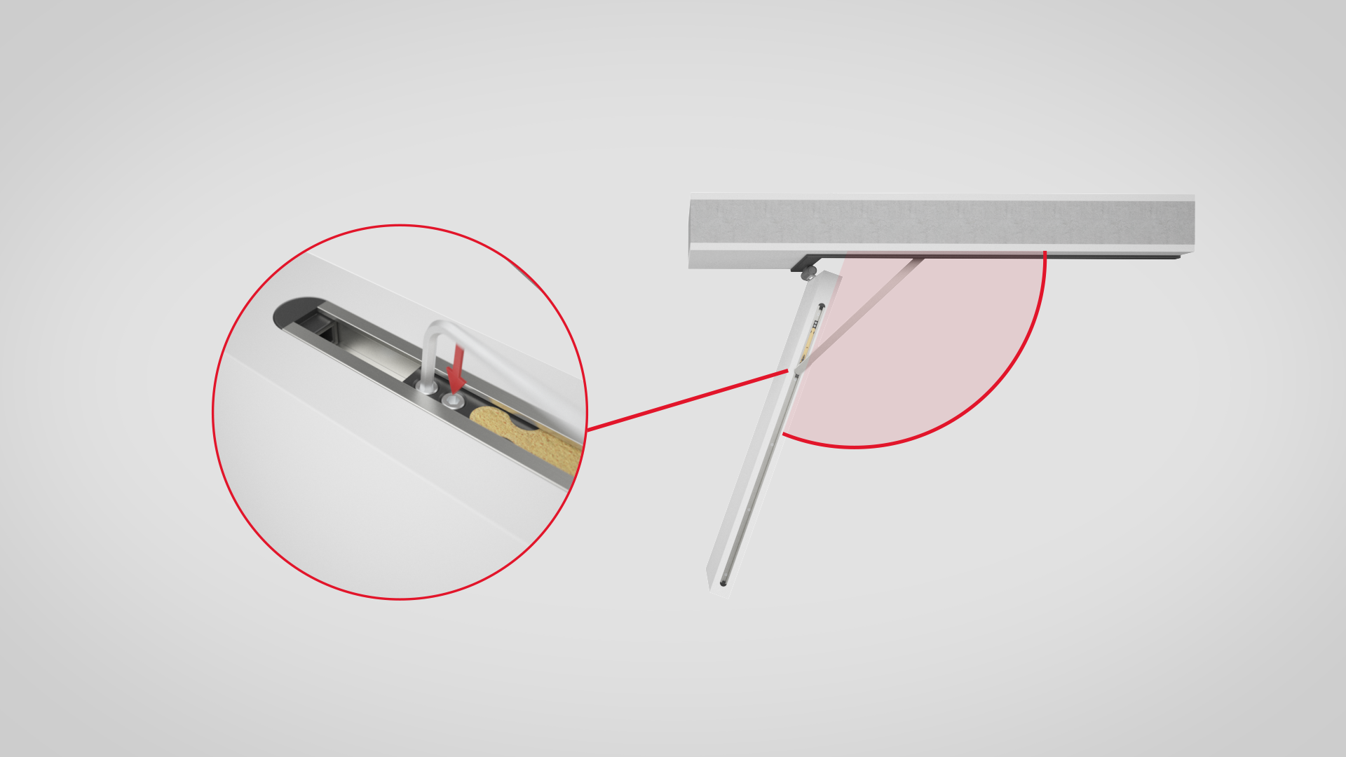 • Skrivena ugradnja i ravan polužni krak (2 mm) za rad pri malom razmaku vrata i dovratnika