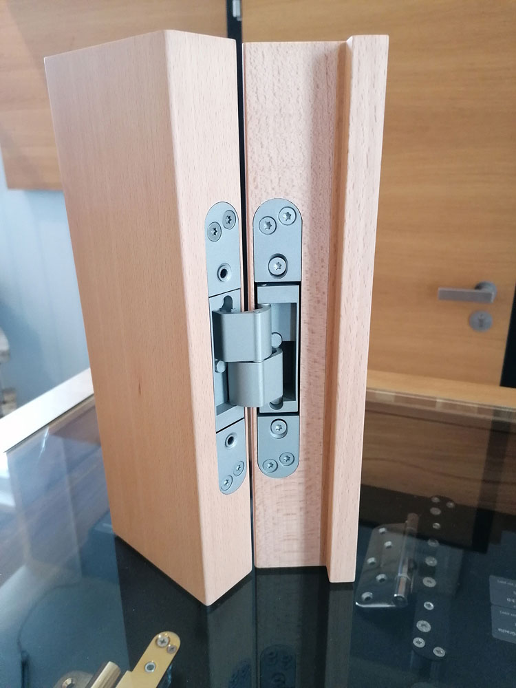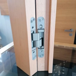 Program za brezfalcna (flush) vrata s številnimi modeli in zaključnimi obdelavami. Nosilnosti dosegajo do 350 kg na par.